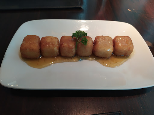 Optamos por iniciar com algumas entradas, croquetes e dadinhos de queijo, que chegaram surpreendentemente rápidas, em apenas cinco minutos. Evidente que essas entradas estavam pré-preparadas, e foram servidas frias. Quando expressamos nosso descontentamento com a temperatura dos pratos, notamos uma reação pouco receptiva por parte dos garçons.