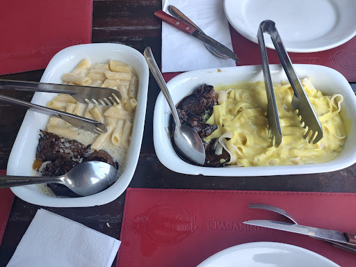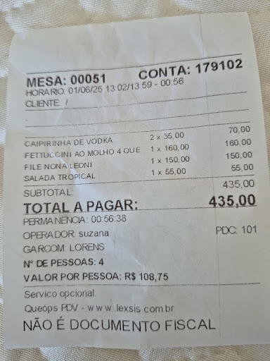 Fomos almoçar hoje no restaurante. Pedimos 2 pratos de filé com massa, um penne ao molho de nata e um talharim com molho de mostarda, pelo preço de 160 reais cada. O restaurante já estava com uns 30% de ocupação pelo horário, mas mesmo assim demoraram mais de 1h para entregar os pratos de preparo simples. Além de o garçom esquecer de levar as bebidas que havíamos pedido, enquanto os garçons mexiam no celular ou conversavam no balcão da cozinha.