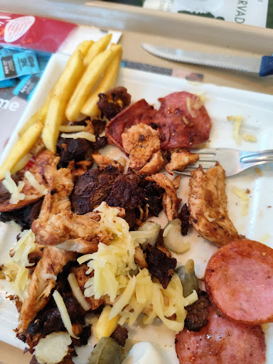 Read moreApós realizar o pedido, a demora de mais de 30 minutos fez com que eu me deslocasse até o balcão para perguntar os motivos. Descobri que não havia feijão pronto. Ou seja, se eu não tivesse ido até o balcão, jamais saberia disso e teria que esperar muito mais tempo. Pedi então o ressarcimento do valor do pote de feijão, porém, a moça disse que não poderia me devolver em dinheiro pois realizei a compra por cartão de débito e a "chefe dela iria reclamar novamente por pagar em dinheiro compras feitas em cartão". Tentou me socar mais batata frita, água e o escambau. Disse que não aceitaria nada disso e ela, de cara fechada, me pagou o valor. A comida poderia estar ao menos boa, mas nem isso. As carnes estavam com gosto de queimadas, as batatas estavam murchas e o arroz muito seco. Não recomendo o local, há opções boas de verdade...