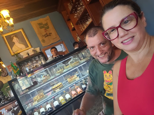 Read moreUm lugar encantador. Um casarão histórico, de 1914. O prédio chama atenção. A fachada é verde e detalhes em dourado bem ao estilo século 19. É um tributo ao Imperador D Pedro II. Há quadros de personagens históricos, lustres e um lindo balcão de madeira onde ficam as delícias de encher os olhos. Apesar de predominar a cor verde, a sala da entrada é azul. Mas escolha bem o horário pois o ambiente é pequeno. Quanto mais cedo melhor. Tem mesas na rua, mas se estiver muito frio ou chovendo tu vai preferir a área interna e aí, às vezes, é preciso esperar um pouco dependendo do número de pessoas. O atendimento é ótimo. O cardápio é bem variado, com doces, salgados, cafés e outras bebidas. Tudo preparado na cozinha do próprio café. O mil folhas é uma delícia. Tem estacionamento conveniado, na Felix da Cunha, 137. O café fica na Felix da Cunha, 91 esquina Almirante Tamandaré. Bairro São Geraldo, no Quarto Distrito. Funciona das...