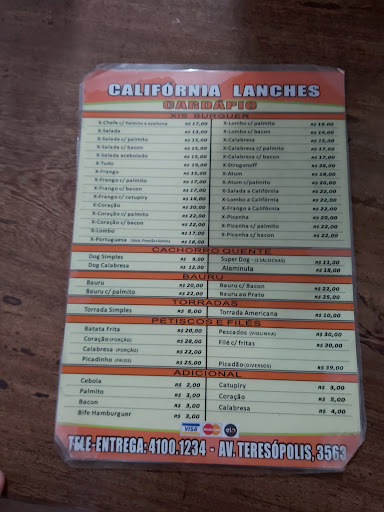 Read moreUm dos melhores lanches da cidade, As meninas são super atenciosas e educadas A melhor maionese que já comi na vida é feita no Califórnia lanches 😋 Sem contar que o xis é muito bem recheado por exemplo quando você pede um xis de bacon, ele vem com muuuuito bacon, quem comer uma vez vai voltar sempre, Local bem higienizado, agradável para levar a família. Muito top,. Super...