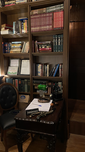 Read moreJá fui 2 vezes e iria mais mil vezes. A primeira vez que eu fui foi antes da reforma, fui com minha melhor amiga e já tinha gostado bastante. Essa última vez que fui foi com meu namorado e nós amamos demais a experiência. Começando pelo ambiente, tu entra e é uma salinha bem pequena, parece uma livraria, aí a atendente abre a estante, como se fosse uma passagem secreta que dá acesso ao salão, tudo muito mágico. A decoração do salão é absurda, bem intimista, tinha uma mesa liberada mas decidimos ficar no bar. Eles tem uma cartela extensa de drinks autorais um mais delicioso que o outro, além de comidas muito gostosas também. Pedimos 5 drinks e 2 porções de queijinhos (10 queijinhos fritos, 2 tipos diferentes) e deu um pouco mais de 300$ para duas pessoas. Nossa eu comeria 5 daqueles. Foi uma experiência maravilhosa, o ambiente, a qualidade das bebidas e das comidas e o atendimento também, fui muito bem atendida. Vou voltar com certeza e é um lugar que espero começar a visitar...