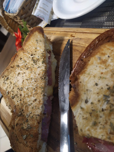 🥘 Comida: 8/10 Pedi um toast de carne de panela, estava bem gostoso e na temperatura ideal. Minha mãe pediu uma empanada de carne de panela também. Ambos vem bons e não demorou pra chegar na mesa. Solicitamos também uma fatia de torta Marta Rocha, é bem tradicional e não é muito doce, é na medida. A apresentação é muito bonita, chegam em pratos mais decorados e com talheres em saquinhos.