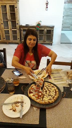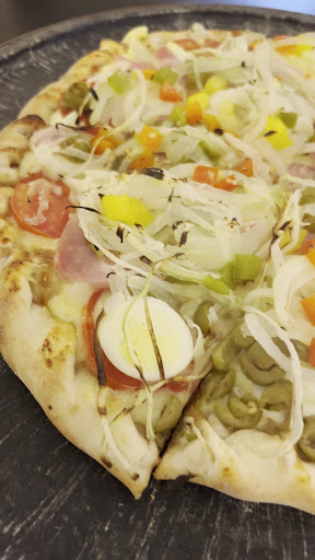 A casa ficou famosa com a divulgação de uma pesquisa, que a indicou como a de melhor nota média no Rio Grande do Sul e a segunda no Brasil, de acordo com a plataforma IFood. Fica bem localizada, com estacionamento na rua e com relativa facilidade para encontrar vaga nas proximidades. Os toaletes são simples e limpos. A cozinha é aberta e relativamente rápida, mesmo com a concorrência da tele entrega e da retirada. O forno é estático (não é a lenha). Para comer no local, tem apenas um ambiente com relativo conforto térmico e poucas mesas. Um espaço kids integrado ao salão, está a disposição das crianças. A massa é leve mas não utiliza a técnica da longa fermentação. O catupiry é original e legitimo. Tem três tamanhos de pizza: Individual, médio e família. Os calzones salgados e doces, são apresentados somente em tamanho único. Os sabores são apresentados no cardápio em ordem alfabética, sem separação por ingredientes empregados. A pizza é servida sobre uma pedra quente, que se mantém quente por um certo período de tempo. Os condimentos são de boa qualidade e servidos em saches, porém foi colocada à disposição para cortar os saches, uma tesoura anti-higiênica. Não foram fornecidos azeite de oliva, nem molho de pimenta, junto com a pizza. Provei uma pizza portuguesa no tamanho individual, que estava com um bom conjunto massa/recheio. Foi utilizado pimentão colorido, porém picado o que prejudicou a apresentação. A cebola poderia ser mais amansada, pois estava muito viva. O molho de tomate não foi percebido. Para acompanhar tem algumas opções de cerveja, todas no tamanho long neck, vinho, água e refrigerantes. O atendimento é simpático e educado, mas sem tempo para apresentar a casa e dar maiores detalhes sobre o processo de produção. O cardápio não é digital, não tem álcool gel nas mesas, os guardanapos não são envelopados e os talheres não são ensacados. O custo x...