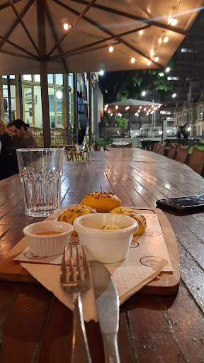 Fica no meio da praça XV de novembro, em frente ao mercado público. Muito bem decorado, aconchegante, luzinhas amarelas e móveis rústicos. Tem. Vários ambientes internos, externos e externos cobertos. Pedimos couvert de entrada. Três paezinhos doce com uma semente (que não identifiquei pelo sabor) acompanhados de molho de mostarda e manteiga temperada. Achei bem sem graça. Já o prato principal foi DELICIOSO e em boa porção. Fiquei super satisfeita. Foram dois pratos individuais: entrecote caseiro (o corte é acompanhado de arroz, farofa, maionese uma delícia, alface, tomate, picles e cenoura) e salmão suculento com limão siciliano, purê de abóbora, farofa de banana e brócolis. Eu e meu noivo amamos! Nao tomamos drink. Recomendamos a cerveja Baden de laranja com Orégano e a de O garçom era meio Devagar, só por isso não ganhou 5 estrelas em tudo, mas a comida foi muito saborosa
