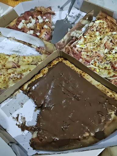 Read moreEmbalagem veio pingando, sujou minha toalha de mesa. Abri e pensei que tinham enviado uma sopa sobre a massa. Uma sopa sabor banana com canela misturada com chocolate. Tirei fotos. A massa: finíssima, quase queimada, dura -textura de doritos. Por sorte a borda era comestível e o chocolate era chocolate mesmo. Foi o que salvou a pizza. Liguei lá e falei para o atendente da falta de divisão entre os sabores e os outros problemas, ele disse "tá". Atendimento conciso e objetivo. Pelo menos não me xingou, porque hoje em dia né... Tudo é possível...Enfim, valeu a experiência para saber onde não...