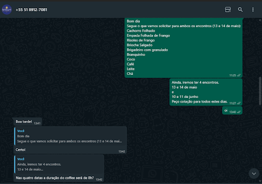 Solicitei um orçamento de coffee para 4 eventos com 22 pessoas cada. Depois de algumas trocas de como seria, recebi um orçamento com alimentos não solicitados, serviços extras não apresentados de antemão e para apenas dois dias. Valor de R$4079,00 (superfaturado?) Lendo toda a transcrição da conversa (abaixo) fica claro que seria um coffee break que iniciaria de manhã, mas que ficaria disponível ao longo do dia para os participantes. Orçaram, então, dois serviços (um manhã e um tarde). Deixei bem claro a insatisfação da falta de entendimento por parte da Maranghello, mas que ainda assim me passassem um segundo orçamento dentro do que havia estipulado. Eis que recebo uma resposta de que iriam evitar de fazer um segundo, pois não iriam atingir as expectativas, mesmo dizendo que o fundamental para a empresa é clientes sempre satisfeitos. Fiz orçamento com a Armelin (em anexo), com uma quantidade suficiente para 20 unidades por pessoa, em contraste com a Maranghello que orçou 16 unidades (total) por convidado. Além disso, o valor da Armelin ficou 3x menor (por dia). É claro que alguém vai vir aqui tentar defender a empresa, minimizar o ocorrido ou querer dar um tapa de luva. A réplica é um direito. Mas certamente, não vão conseguir mudar o fato de que não souberam conduzir essa negociação e perderam um cliente por...