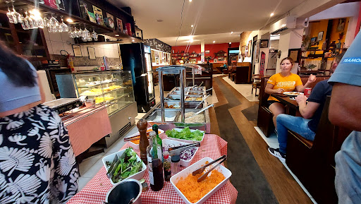 Comida: Simples e gostosa! Arroz com feijão, bife, batata frita, abóbora caramelada, salsichão, lasanha muuuito gostosa. Dois tipos de arroz, couve... Tinha o básico e tudo muuuuito bem feito. Salgados do buffet: poucas variedades, alguns fritos e outros assados, massa folhada muito gostosa. Tortas e doces deliiiiciosos; torta de chocolate perfeita, meio amargo delícia. Ambrosia é uma das melhores que já comi. Atendimento muito bom, pessoal educado e cortês. O suco que acompanha eu achei muito artificial, trocaria por um copo de água. Vale muuuuito a pena comprar o cupom do site de desconto. O ambiente é lindo e aconchegante.