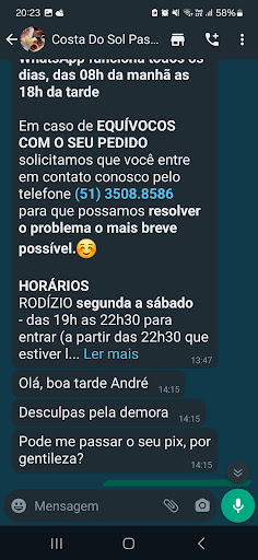 Read moreDia 07/07/25 Reservei 24, e foram exatamente 24 convidados, e não tinham 24 lugares juntos. Tive que separar meus convidados. Era 22h05 e a funcionária passou sendo grossa recolhendo pratos de pessoas que estavam esperando passar pastel. Assim como, estavam limpando o salão com água sanitária pura, cheiro fortíssimo, terrível. Pasmem, eu sou garçonete, eu sei bem o que é ter que lavar os copos e os pratos no final do evento, mas somos bem orientados pela gerência a não correr os convidados até o final do evento, é o mínimo. E a pastelaria fechava 22h30. Após isso, poderiam até apagar as luzes, mas achei de extrema falta de educação o que foi feito ontem. E várias vezes, uma funcionária em questão de cara fechada, sendo grossa e mal educada, não foi 1 nem 2 convidados, foram todos que mencionaram. Questionou comanda dos convidados, falou que tinha que esperar a bebida, que pagava um único valor para beber até as 22h, e por aí vai. Todos temos problemas, mas no trabalho, não podemos respingar isso. Por também trabalhar no setor, sei que por ter sido segunda feira, todos ali só queriam trabalhar e ir embora, mas sabiam que teriam 24 pessoas confirmadas, eu e minha família e amigos estávamos em uma comemoração que no final, ficou o comentário "bah não viemos mais". Os Pastéis até estavam bons, exceto alguns, pois estavam pingando azeite, as demais comidas estavam ótimas, batata e sopas, o restante do atendimento também, alias, a moça que estava servindo o refri muito querida. porém o restante deixou...