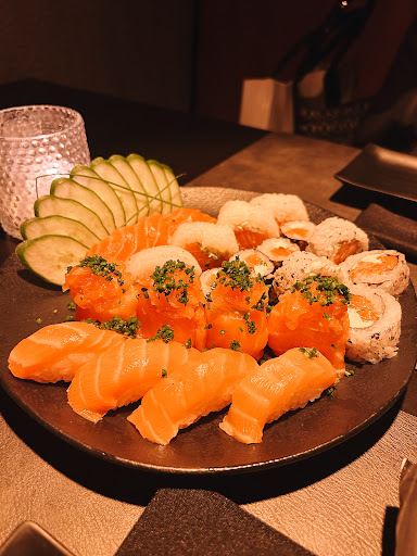 Pedimos o menu degustação que vinha entradinhas (sunomono, algo com shimeji, hot fila e ceviche). Demorooou pra chegar, mas misericórdia, mt bom KKKKKKK depois veio o temaki e as peças. E senhor Jesus, cada peça valia por duas. Gigaaaantes e deliciosas. Os garçons educados e atenciosos. Realmente só ficamos meio perdidos na hora de entrar e um pouco descontentes com a demora. No mais tudo TOP, o menu degustação deu e sobrou (para duas pessoas)....