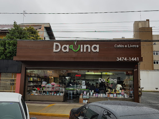 A Davina tem uma bela história! E pelas opiniões postadas aqui e as bonitas fotos, fui até lá cheia de expectativa, para comemorar minhas bodas de turquesa – já que amamos café! Bom, expectativa demais pode ser frustrante... FOI. Então, não. O lugar não é toda a teteia de que falam. É um lugar pequeno que parece meu quarto: uma grande bagunça! Aquelas caixas ocupando espaço, aqueles muitos atendentes para pouco movimento, coisas aleatórias para montagem de presentes... Além do mais, a loja é apenas ok, sem nada de especial, e o atendimento é só comum mesmo, nada de espetacular. Nossos capuccinos estavam frios e o café gelado estava sem gosto de café. Boa mesmo: a torta fria. Preços?... altos demais para encantamento de menos...😶