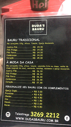 Read moreAtendimento de qualidade, seja por tele, seja no local. Mesa na rua, excelente pra tomar uma cerveja enquanto espera o lanche. O Bauru é sensacional, o à moda da casa vem com cebola frita na chapa, peça extra bacon e ovo que é garantia de qualidade. Tem todos condimentos, inclusive mostarda Ribs e tabasco. Preço condizente com a...