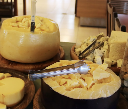 Tem também uma ilha com queijos provolone e parmesão para tu mesmo se servir e um cafezinho pra depois de comer o suficiente!