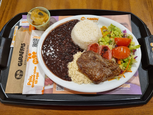 Read moreO Giraffas aposta na comida caseira: arroz, feijão, proteína e salada. Em um ano frequentando a unidade do Barra Sul, é o estabelecimento em shopping que eu mais estive para jantar, certamente bem mais do que 70 vezes. É que moro a 1,2km do shopping mencionado. Recomendo os seguintes pratos, valores fevereiro/2023: "Churrasquito" (R$ 27,00), "Brasileirão picadinho de carne" (R$ 30,00) e "Churrasquito filé mignon suíno" (R$ 25,00). Na promoção "prato do dia", o "Churrasquito" (4as feiras), o "Churrasquito filé mignon suíno" (5as feiras) e o "Strogonoff" (3as feiras) estão por R$ 22,00. Você não encontrará banner indicando os pratos em promoção, é bom sempre indagar. Vale a pena experimentar: "Frango à Milanesa", "Coxxão de Frango Crocante", 'Brasileirão Filezinhos Empanados", "Frango compactado" e "Brasileirão Almôndegas". Se você não quer economizar, recomendo o "Contrafilé". Na promoção da Black Friday em 2022, se bem me recordo, paguei a metade do preço pelo "Contrafilé". Além dos pratos, o cardápio Giraffas conta com sanduíches e sobremesas, entre outros. O atendimento...