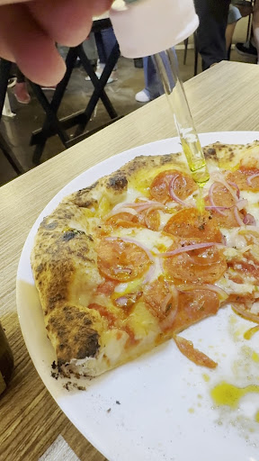 Infelizmente o hype do local não justifica a qualidade da comida. Não fiquei impressionado pela marguerita (que provavelmente é o sabor mais fácil de ser produzido, e impossível errar). A pizza de cebola caramelizada estava boa, mas meu mau humor depois de 2h esperando estava nas alturas. A pizza doce de Nutella era raquítica; estão economizando no recheio??