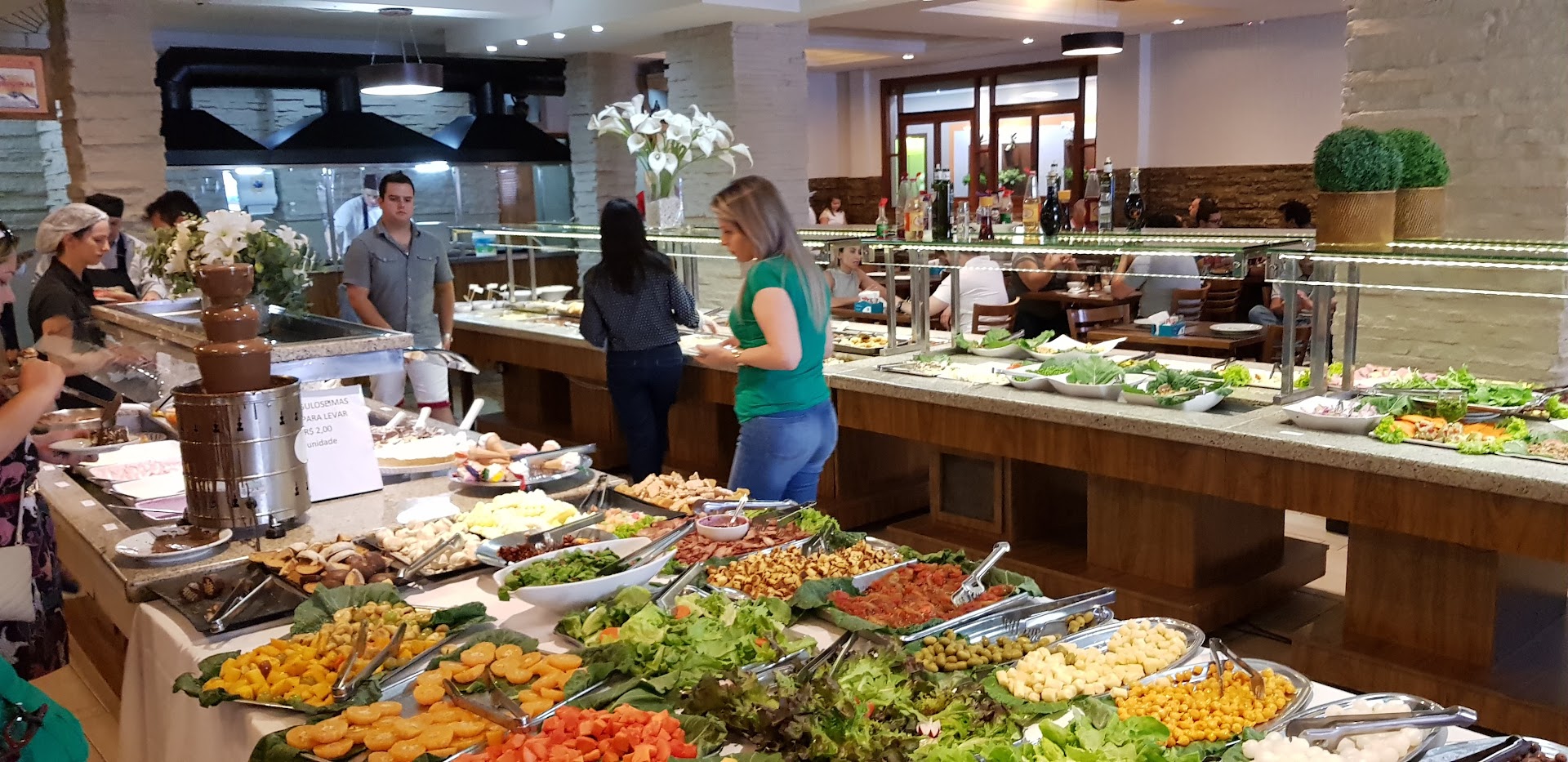 Read moreO local possui apenas a opção de buffet livre. O preço varia conforme o dia da semana (mar/24- domingos R$56, sábados R$44). Nos dias de semana, o preço fica R$34 no salão de cima e R$27 no de baixo). O ambiente de baixo, mais barato, conta com menor diversidade de pratos e sem o setor de grelhados ( mas conta com carnes diversas, parecendo uma boa opção para o dia a dia). As comidas são constantemente repostas (contudo há um grande fluxo de pessoas) e nos dias de semana os garçons oferecem refresco gratuitamente. Nenhum prato se destacou, sendo uma comida mais cotidiana. Possuíam diversas sobremesas inclusas (uma delas era diet) e frutas (caqui, lima, goiaba, etc). Em dias muito quentes o ar condicionado não dá vencimento no salão de cima. Possuem apenas poucas vagas na frente, sendo melhor estacionar nas ruas...