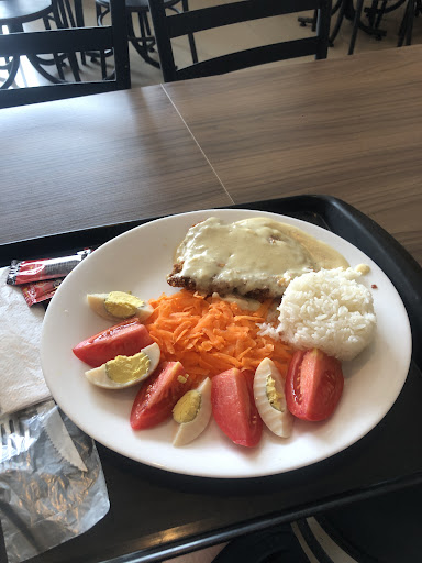 O prato: o que eu escolhi era o Bife empanado ao molho de nata com arroz, ovo cozido e salada (R$ 22,80). O molho de nata, não desceu legal até agora no meu estômago e eu espero não ficar ruim, a salada, apenas uma cenoura ralada, tomate e um ovo cozido partido em 4. Pelo preço até tá tranquilo, mas não esperem algo extraordinariamente delicioso.