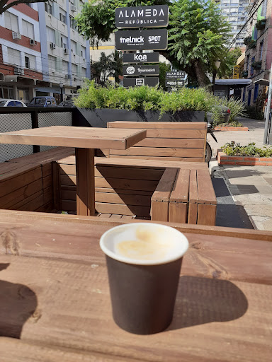 É uma opção muito boa de cafeteria para takeaway. O atendimento é bom. Os cafés são muito bons e gosto do brigadeiro de chocolate meio amargo também. Há mesas na calçada, mas infelizmente a Cidade Baixa anda muito mal mantida e há diversos pontos pelo bairro com mau cheiro e sujeira. Por isso, não recomendo ficar numa das mesas localizadas na calçada...