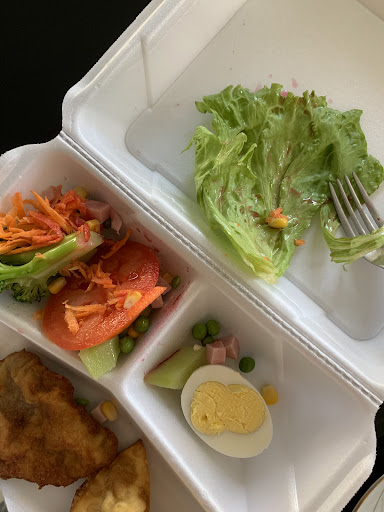 Read moreQuer passar fome? Peça pra levar! O dono é super simpático mas a moça que me atendeu foi de uma ma vontade gigante! Paguei 23,90 e pedi pra atendente a opção de proteína, 1 pastel e bastante salada (todas as saladas, exceto ovo. Não pedi arroz, feijão, massa, batata que tb estava no cardápio, era simples! Eis que UMA FOLHA DE ALFACE, UMA FLOR DE BRÓCOLIS, 1 FATIA DE TOMATE Fiquei até com vergonha da pessoa que presenteei...