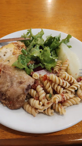 Durante o almoço tem serviço de buffet livre com um preço bem em conta.