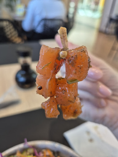 Read moreMeu marido e eu entramos no restaurante, sentamos em uma mesa e só tinha cardápio digital. Não tínhamos o celular conosco. O garçom estava passando, chamamos e ele não ouviu. Pessoal da mesa da frente chamou, e ele não ouviu. Chegamos a conclusão que ele 'nao ouviu' de propósito. Não tinha como não ouvir os 4 chamando ele. Enfim, levantamos e fomos no balcão perguntar se havia como fazer o pedido sem ser pelo celular. O rapaz nem cumprimentou, mal olhou pra nós disse 'não' e virou a cara bem mal educado. Eu tinha levado meu marido pra almoçar, pois um amigo me trouxe um Poke deles um dia e achei ótimo, falei que meu marido que ele ia adorar. Quebramos a cara. E como não somos chegados em celular, não...