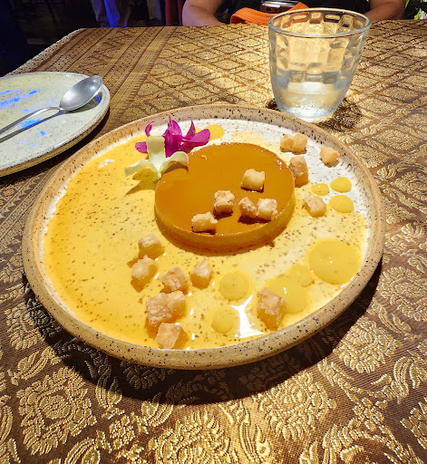 Read moreJá temos uma primeira impressão muito boa, pois o jardim é pequeno mas muito aconchegante e bonito, com uma energia interessante de acolhimento e modernidade. Fomos atendidos com excelência, sendo os atendentes muito amigáveis e eficientes, com bom humor e domínio completo sobre as características dos pratos e bebidas do menu (que é bem enxuto, o que - para mim - é outro ponto positivo, e está disponível nas redes sociais - outro grande ponto positivo). Começamos com drinks, que eram bem aromáticos e agradáveis. Escolhemos os vegetais fritos e molho de misso na entrada, e vieram no ponto de crocância perfeito, com interior cremoso e saboroso, sem falar no molho divino (até me comentei ao fim do atendimento que podiam ter colocado mais molho, e disseram que certamente providenciaram se tivesse pedido na hora). Como principal, experimentamos o prato especial, que hoje era um curry de camarões de inspiração cambojana acompanhado de arroz jasmin: bem aromático, com picância agradável contrastando lindamente com o adocicado do leite de coco e dos camarões, que vieram no ponto certo. A sobremesa também não decepcionou, trazendo texturas de chocolate meio-amargo (brownie + mousse) com cobertura de caramelo salgado e missô, e finalizou a noite com chave de ouro, trazendo doçura no ponto certo e deixando um gosto de "quero mais". O preço não é baixo, mas é totalmente justificado pela qualidade do serviço e da comida que...