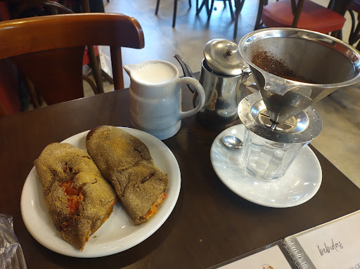 Read moreSempre vou com meu esposo neste café. É muito bom, tem muitas variedades de salgados e doces, o café passado na mesa, gostamos muito. Sempre fomos bem atendidos e com gentileza. Porém, ontem, levamos minha filha pra conhecer e o nosso pedido estava demorando a ficar pronto; observamos que entregavam os pedidos dos clientes que chegavam depois de nós e o nosso nada. Meu marido foi perguntar no balcão, o porque estava demorando e o dono ou gerente, não sei, foi muito mal educado, disse que não são de flash, que meu marido estava exigindo o pedido, quando ele só perguntou o porquê da demora? Depois esse moço foi falar para as caixas ( bem alto) querendo escândalo, que tinha cliente exigindo o pedido na hora, blá, blá, blá... Ele, como dono ou gerente do local deveria ser o primeiro a dar razão aos clientes ao invés de querer barraco! A senhora do caixa também retrucou com meu marido na hora que fomos pagar, dando razão ao chefe dela. Que pena! Levei minha filha pra conhecer e disse que o lugar era formidável! Mas, infelizmente, a experiência foi ruim. Comemos, mas tivemos vontade de desistir do pedido depois da grosseria do senhor sem educação. E o café da minha filha veio frio, apesar da demora. E pelos comentários que li, não fomos os primeiros a passar por isso! Comida boa, local aconchegante, mas com grosseria, a comida não desce bem. Que pena! Aconselho esse moço, a tomar Rivotril para atender melhor seus clientes. Provavelmente ele estava irritado porque queria ir embora logo, pois fomos perto do horário de fechar, mas ainda tinha clientes. E não estávamos pedindo favor, pagamos por tudo...