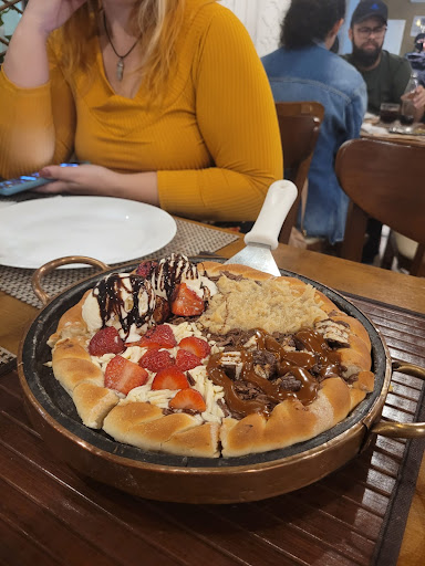 Read moreAmbiente excelente, música baixa, acústica do local boa, iluminação aconchegante. Serviço rápido e atencioso. Ingredientes de qualidade e pizza saborosa. A de alfajour que foi muito falada por influencers eu e meu namorado achamos muito doce, mas os outros sabores (prestígio, choc branco c/ morango e sorvete) nós achamos impecáveis. A cebola caramelizada leva molho inglês, que eu particularmente não curto, prefiro ela mais docinha, e em algumas pizzas a presença do pimentão (possivelmente no molho) fica mais evidente e eu não gosto. Mas claro, isto são preferências pessoais, não posso tirar pontos do local por isso. Porém as bebidas são muito caras, uma coca de garrafinha (290ml) R$ 8,90, chopp de 500ml (que o copo na verdade é de 473ml) 18,00. Média de refri de lata (350ml) em outros estabelecimentos fica em torno de 6,00. Então no fim dois rodízios premium (quarta 79,90), 3 coca 0 e um chopp saiu mais de R$ 200,00, mas valeu a...