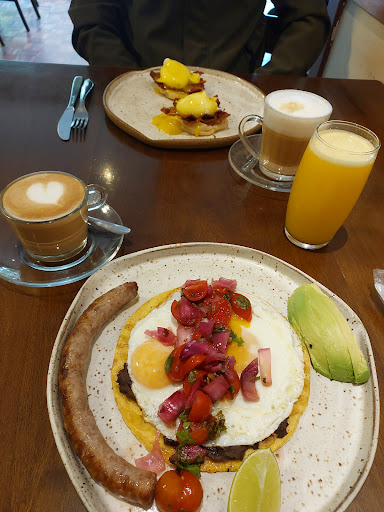 Read moreQue arrependimento! Eu entrei e me arrependi, mas nao quis ir embora pq a moça que me atendeu era simpática. Entrei por um ambiente e tinha um cheiro ruim, fui p outro ambiente, nao tinha o mesmo cheiro, nem nada que assemelhasse ao primeiro ambiente, inclusive, achei que fosse outro estabelecimento. Enfim, não tinha o cheiro, mas tinha uma sujeira horrível que estava desde o piso que parecia ter gordura e também muitas folhas das árvores da rua, em quantidade que deixava o ambiente com aspecto de desleixo. As mesas, as moscas e mosquitinhos que voavam dentro dos expositores de bolos e pães pioravam ainda mais a impressão. Teimosa comigo mesma, eu fiquei. Outro susto foi o valor do cardápio. Pedi um pão de fermentação, ovos mexidos, manteiga e àgua. Meu marido pediu crossaint com presunto e queijo e manteiga. Saí com as mãos, boca, estômago ensopados de gordura. É extremamente gordurosa a comida, nao é gostosa, é desagradável aquela quantidade desproporcional de manteiga e gordura num ovo que fica boiando na gordura. O pao é azedo e extremamente gorduroso. A aparência de tudo é péssima, escassa e suja. É triste dizer isso de um estabelecimento, até pq achei muito bonita a história escrita na imagem da parede, mas o valor cobrado nao condiz com NADA que é oferecido no local. Nao volto e...