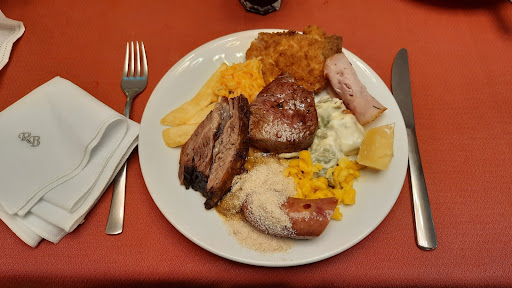 Read moreTradicional que mantém a qualidade que visualizamos com a presença familiar de várias gerações de clientes. O ambiente já foi mais silencioso (almoço), há dias que o vozerio incomoda e diminui a qualidade do ambiente. Sem muitas variações, mas sempre de muito boa qualidade o bufê. Garçons atenciosos e educados. Doces! Muito bom. Uma raridade de ótima qualidade é o café caseiro servido à mesa em bule com a cordialidade do garçom, fugindo da mesmice, muitas vezes de mau paladar, dos "cafés-expressos". Toaletes sempre em boas condições. Estacionamento próprio com guardas. Estivemos no primeiro jantar-baile da casa - Valeu! Incentivamos que continue e aprimorem com músicas de qualidade para dançar desde a abertura e jamais esperem que o jantar acabe para anunciar as boas músicas - horas depois. Entendam que há casais que vão somente jantar, mas muitos vão para dançar de rosto colado e namorar (essas pessoas ainda existem e carecem de bons ambientes com música variada e civilizada) e a janta é acompanhamento para uma bela noite. A seleção de pratos do jantar foi adequada para a livre escolha. Sugiro um vocal com o conjunto musical e que continuem nessa linha alternativa com a qualidade e a respeitabilidade que a casa sempre teve...