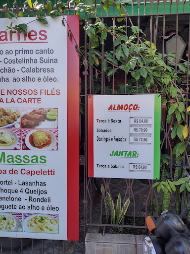 Eu recomendo o rodízio. A comida é maravilhosa. Confesso que fiquei apaixonada pelos pasteizinhos de queijo. No rodízio, além destes pastéis maravilhosos, tem polenta frita, salada de maionese e de raditi. Eu amo sopa de Capeleti então sempre começo por este prato. Aí vem várias massas como tortei, espaguete alho e olho, vários tipos de lasanha, caneloni, inclusive de goiabada e nhoque que eu adoro. Os molhos são variados. Intercalado com as massas vem espetos com carnes como vazio, porco, frango, linguiça e um filé alho e olho. Tudo maravilhoso. Ótimo atendimento. O ambiente é agradável e lembra uma típica cantina italiana. É um lugar pequeno, então, às vezes, pode ter fila. Muitas pessoas buscam comida para levar para casa e tem tele entrega. O estacionamento é na rua, então tem que procurar nas imediações. O ideal é ir antes...