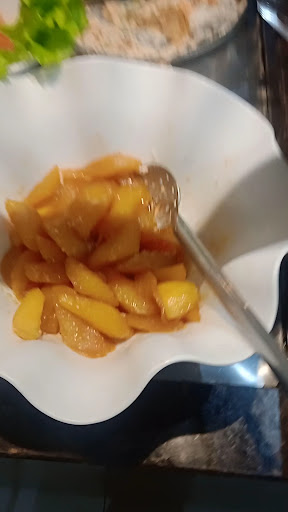 As saladas maravilhosa e bem apresentadas Pratos quentes incríveis O salmão espetacular e provei a famosa lasanha de abacaxi E a maionese de salmão tipo salpicão