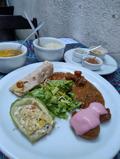 Read moreRestaurante indiano e vegetariano mais tradicional e bonito do Bom Fim. Sou cliente há pelo menos 10 anos e nunca me decepcionei. Comida incrível, saborosa, variada e saudável. Todo dia um cardápio diferente( divulgado no facebook) tendo como base arroz integral cateto, um dahl(caldos) que variam entre lentilha, ervilhas, grão de bico e outras leguminosas e salada; estes acompanhados de deliciosos pratos como samosas, quibes, dai vadas, esfirras, chutneys, etc. Para beber, sucos frescos e os famosos lassi da casa. As sobremesas também são todas excelentes. Pena que não há gulab jamun na carta de sobremesas; delícia rara que aparece nos finais de semana. Aos domingos, cardápio especial com sobremesa incluída( aqui o gulab aparece vez em quando!). Durante a semana se você tem tempo para almoçar com calma, prefira o período após 13h, pois o movimento fica mais tranquilo. Às vezes o restaurante está lotado e os atendentes poderão parecer meio atrapalhados mas, a comida será igualmente incrível. Possui bicicletário....