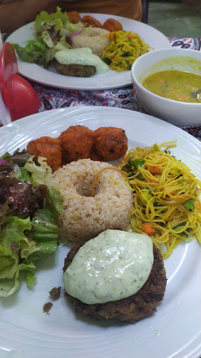 Read moreO almoço funciona com o sistema de prato do dia, quando eu fui estava maravilhoso. Tinha arroz integral, feijão branco com legumes, um bolinho de legumes maravilhoso, um "tortei" enorme com molho de tomate em cima, salada bem temperada e legumes salteados, o prato era muito bem servido, nem consegui terminar tudo, e custa 20 reais, preço muito justo. Depois que descobri que existe a possibilidade de pedir um prato menor (nao sei se o valor muda). A decoração do ambiente não me agrada muito, e o atendimento deixou a desejar. Como o restaurante é vegetariano e eu sou vegana perguntei se tinha algo de origem animal no prato e se haveria possibilidade de mudar caso tivesse mesmo, na hora a garçonete me respondeu "somos vegetarianos, não trabalhamos com carne não tem nada de origem animal", eu tentei explicar que era vegana e o que era algo de origem animal (nao necessariamente carne) mas a comunicaçao foi um pouco complicada. Depois descobri que a unica coisa de origem animal no prato era um molho de iogurte que trocaram por um molho de grão de bico. Resumindo: comida maravilhosa e preço justo, pontos negativos, pra mim, foram a decoração e o atendimento de uma garçonete em específico. Voltarei certamente mesmo assim e recomendo.