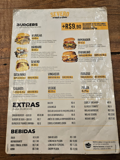 Read moreTive uma péssima experiência nesse local. Hamburger bonito,porém sem sabor, sem falar que domingo não tem opção de combos, então é tudo cobrado separadamente, o que deixa o valor bem salgado. Mas o que mais me chateou foi o péssimo atendimento dos funcionários, minha irmã levou o bebê de 11 meses, ele chorou, e os funcionários começaram a revirar os olhos e apressar para que fôssemos embora... Nos sentimos muito constragidos com a situação, com a falta de profissionalismo e e empatia da equipe, que trata seus clientes da pior forma possível. Este estabelecimento não tem gerente? Ou algum profissional capacitado para instruir seus funcionários? Já fui várias vezes no Severo, mas hoje realmente pude perceber o quanto baixou a qualidade do...