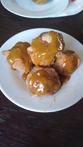 O restaurante está instalado em uma construção histórica, muito bonita e charmosa. As instalações são confortáveis e organizadas. Uma excelente opção para o almoço, com buffet variado a preço justo. Existe opção de carnes de boi e de frango feitas na chapa para o almoço. A partir das 15h00 eles começam a servir os sonhos açorianos. Eles são crocantes, fofinhos, ocos e leves, e existem diferentes tipos de coberturas que podem ser pedidas. Eu recomendo o de churros, que é coberto com doce de leite e uma mistura de açúcar e canela. Ele é simplesmente delicioso e vai muito bem com um...