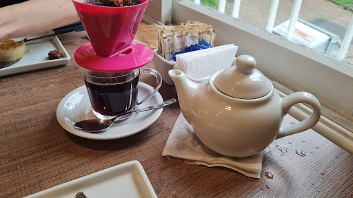 Read moreLugar, bacana, bem bonito por dentro. Pedimos café, salgados e um brownie. Os salgados foram uma empada de carne de panela, esta estava ok nada de mais, e um scone, esse sim muito bom. O café pedimos passado, você passa na mesa, o que achamos sempre muito bom, porém o bule é péssimo, se tenta derramar devagar a água escorre por ele e molha a mesa, achamos bem ruim isso. O brownie pedimos o de café, goatoso, mas não senti gosto do café no brownie. Atendimento bem bom. Lugar bacana para...