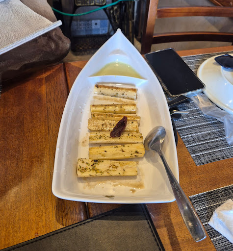 Fomos atraídos pelo cheiro que saía do lugar, pensei ‘Que cheiro bom’ Fomos recepcionados pela Yasmim, atendimento impecável, e ainda nos colocou dentro do restaurante com uma vista linda o céu bem azul e tinha um ventilador que deixou tudo confortável. Preço justo! Olhamos outros cardápios, nada nos agradavam e os preços lá em cima. Pedimos uma Paella de frutos do mar.🥘 Estava divina, pedimos para 2 pessoas mas servem 4 por indicação da Yasmim. Também pedimos um filé a parmegiana que estava bem sequinho e crocante, com um molho ótimo. Som ambiente muito agradável, amo samba e pagode e era o que estava tocando no momento. 🥰 Não menos importante, adorei as apresentações das bebidas, com recadinhos, eu simplesmente amooo esses mimos e cuidado em causar impacto no cliente. A sogra está com dúvida no sabor do Chopp e a Yasmim fez uma degustação dos 3 sabores, na imagem da para ver a cara de felicidade. 😍🥹