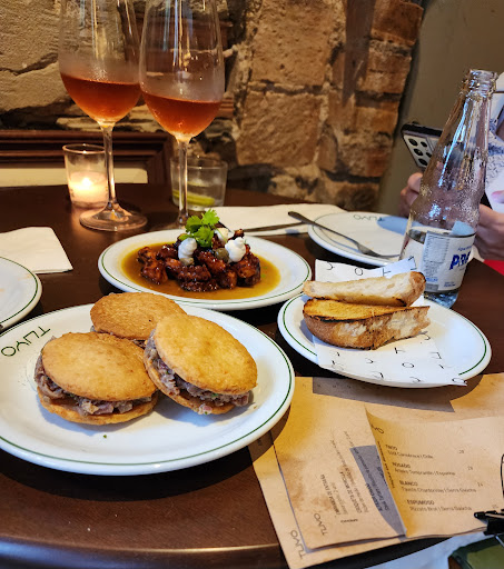 Read moreA comida é boa, pouca variação e porções pequenas o que sugere a proposta de wine bar. O ambiente é charmoso porém alguns pontos precisam ser melhorados. Na mesa em que eu sentei mal cabiam os pratos que eu pedi, balde com espumante, pratos e taças tinhamos que cuidar para não bater e cair. Minha experiência começou na parte interna e depois fomos pra parte externa, o que só reforçou o sentimento de que parece que faltou verba para terminar o espaço, cadeiras desconfortáveis e aquelas velas a pilha que não funcionam… tirem, é vergonhoso! Atendimento muito ruim, eu tive que pedir para trazerem talheres e guardanapos. Os garçons não sabiam informações dos vinhos e no final quando fui fechar minha comanda havia uma cerveja no valor de R$3,00 (qual cerveja custa isso?) que eu não consumi mas paguei para poder encerrar a péssima experiência e ir embora. Conversando com meus amigos e clientes, todos informaram uma experiência bem parecida e que também não...