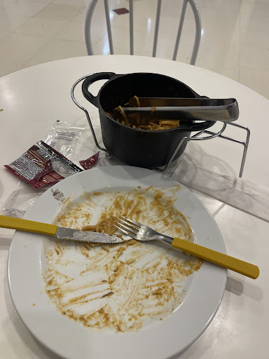 A proposta da Usina de Massas Express é servi-las em panelinhas de ferro. Bom preço? Depende. Se você for no "barato da hora" ou na "panela do dia", sim. A panela do dia mais suco tem valor bom, R$ 34,90 (abril/2024). Sem o suco, R$ 31,90. Entre duas opções de molho, escolhi o de tomate seco com requeijão e muçarela de búfala. Muçarela de búfala? Em 2023, sim. Em 2024, apenas tomate seco e requeijão. Em 2023, parmesão em sachê. Em 2024, não. Estive em 05/05/2023 e em 17/04/2024. Detalhe positivo: bem mais tomate seco em 2024. As fotos são de 2023. A maioria dos molhos sem promoção não são em conta. E a bebida não é inclusa. Adoraria um Spoleto ao invés de uma Usina das Massas no Praia de Belas. O penne viria com bem mais ingrediente na modalidade...