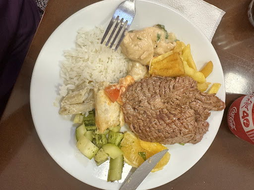 Read moreEstive no restaurante hoje, chegando entre 14h e 14h30, e a experiência foi extremamente negativa. Embora ainda estivesse dentro do horário de funcionamento, a operação já estava sendo encerrada. O buffet estava completamente frio, com os alimentos apresentando nata por estarem parados há muito tempo, sem qualquer controle de temperatura adequado – algo básico para garantir a segurança alimentar. Além disso, ficou evidente que a comida utilizada na teleentrega era complementada com os itens disponíveis no buffet, o que é inaceitável considerando o estado em que se encontravam. O arroz estava com gosto de queimado, o bife cheio de nervos... Para piorar, observei pessoas manipulando as marmitas sem o uso de touca e luvas, comprometendo ainda mais os padrões de higiene....