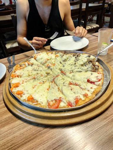 Read moreAchei ótimas as pizzas salgadas, porém a pizza de sorvete estava parecendo velha, e tinha pedaços de gelo inteiros dentro do sorvete. O atendimento dos garçons foi bom. As mesas e cadeiras eu achei confortáveis, porém eu deixaria como sugestão que se tivesse como deixar um pouco mais de espaço pra circular entre as cadeiras, a gente não ficaria tão apertado ali no espaço do rodízio (isso complica para os garçons terem acesso aos clientes também). Achei boa a relação preço/produto. Recomendo aos amigos que querem pizza para comer bastante sem...