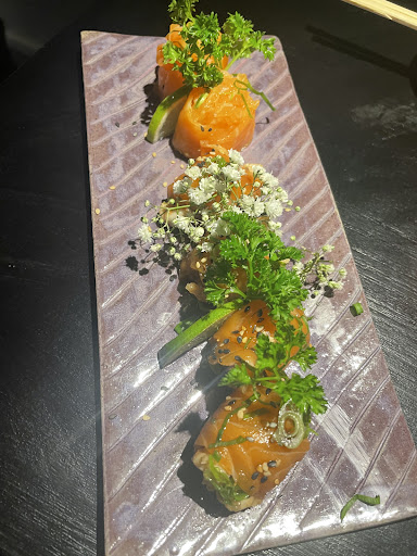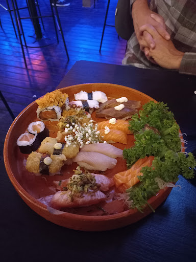 Read moreO ambiente realmente é bonito e um pouco misterioso mas perde pontos por algumas mesas serem mto perto das outras, você passa a noite ouvindo a mesa do lado. O atendimento era bom, garçons atenciosos e cordiais porém não explicavam os pratos na hora de servir. Pedimos a sequencia mais completa e não acho que vale o valor, as peças não tem nada de especial, achei pouca variedade, muitas invenções ruins saindo demais do tradicional e misturando sabores que não combinam, peças grandes de mais e algumas com mto arroz, tirando a delicadeza do sushi que, deveriam ser feito para comer em uma bocada na maioria das vezes. Não havia pratos individuais ou apoio para os hashis, era difícil comer alguns pratos maiores que precisavam de duas bocadas por exemplo pois ficava caindo tudo na mesa, pelo valor de R$ 180,00 eu esperava comer iguarias como vieiras por exemplo mas nem mesmo um temaki estava incluído na sequencia. Achei a sequencia curta e com apresentação ruim, todos os pratos eram decorados com uma rodela de rabanete aleatório ou alface kkkkk Na minha opinião a sequencia mais completa do restaurante deveria oferecer uma bela variedade para o cliente provar e ter uma experiência gastronômica completa, mas achei a sequencia curta e depois você precisava ficar catando no cardápio pelo celular (horrível de ler) as variações de sushi para pedir como repetição, é mto confuso dessa forma, se eu nao pedisse não viria nem mesmo polvo ou lula na sequência. Gostaria de elogiar os drinks que são bonitos e saborosos mas também preciso criticar a sobremesa que era horrível e simples, aquele suflê com erva de chimarrão por cima é muito ruim.