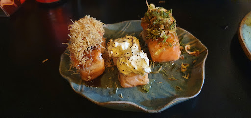 Primeira experiência: Salmão fresco de textura aveludada, sushis saborosos com ponto do arroz perfeito e combinação de sabores equilibradas, além das peças terem um ótimo tamanho. A apresentação também é encantadora! Pedimos a sequência limitada, na qual a reposição das peças é livre, com exceção do salmão. Não entram nessa sequência o ceviche e os sushis que contenham camarão. Ambiente climatizado e pequeno, acredito que comporte no máximo umas 25 pessoas, mas aconchegante. Atendentes cordiais e reposição rápida. Conhecemos diversos sushis na Zona Sul de Porto Alegre e este nos conquistou pelo melhor custo benefício, pelo sabor e pela qualidade!