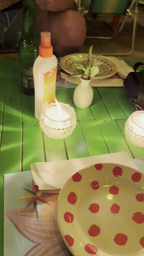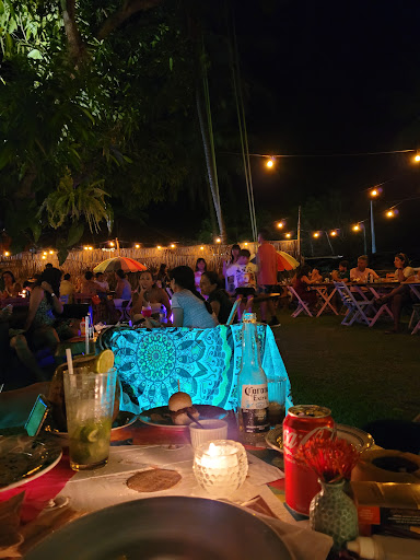 Lugar muito agradável com música ambiente e excelente atendimento. Som ambiente agradável (no volume exato que não atrapalha a conversa na mesa). No dia que fui não era música ao vivo, mas as músicas eram bem selecionadas. Garçons muito atenciosos e prestativos. Os banheiros estavam limpos. Por se tratar de um lugar com grama e funcionamento noturno, ofereceram repelentes para caso de incômodo com mosquitos, mas eles não chegaram a atrapalhar (eu passei o repelente). Não provei as refeições e indico as seguintes entradas: "ceviche daqui" e Mini burgers. Se for um casal ou dois amigos, dividam as entradas pedindo uma de cada. O ceviche são acompanhados de chips de batata doce. Em relação aos mini burgers, eles são 4 burgers pequenos por porção e também são acompanhados por um molho de pimenta de biquinho (que vem separado e não arde). As entradas custaram entre R$ 35,00 e R$ 40,00, sendo um preço justo para a região. A cerveja long neck veio bem gelada e custou em torno de R$ 12,00 cadê unidade. Também ha opção de suco de uva integral, refrigerantes e vários drinks. As opções de refeições não são muitas (eram 3 no dia que fui) e podem variar de um...