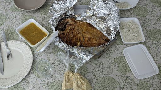Péssimo. O mínimo que se espera de um tambaqui assado em Porto Velho é que seja fresco, nao estava. Peixe com sabor forte, de velho, nada a ver com o sabor suave do tambaqui. Eles falaram que o peixe é do "dia", mas falar até papagaio fala. Cansei de comer Tambaqui, então sei quando um é fresco e não teria motivo nenhum de perder meu tempo reclamando disso se o sabor fosse.o mesmo de sempre. Além disso, enviaram o pedido incompleto, como podem ver está faltando a banana e macaxeira. Como esperado, jogaram a culpa no entregador, falaram que o RH vai reembolsar 10 reais, sabe Deus quando. NÃO RECOMENDO. Dinheiro jogado no lixo. Primeira e última vez.