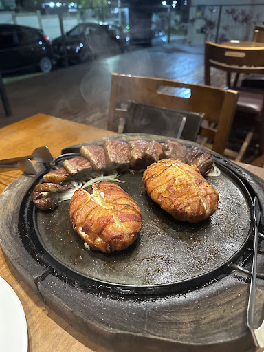 Read moreO serviço oferecido pelo estabelecimento e o valor nao condizem com o que é entregue. Pagamos um valor bem elevado com a intenção de ter uma experiência gastronômica surpreendente, mas infelizmente surpreendeu negativamente. Estava tudo até gostoso, mas a carne não estava no padrão de qualidade esperado, muito fibrosa e pouco macia. A quantidade de carne tbm não valeu a pena, nos disseram que viria 800g de picanha, uma peça inteira cortada em aproximadamente 7 bifes. Realmente veio uma peça inteira, mas era tão pequena que seu maior pedaço nem um bife era 😂 ficamos até na dúvida se era picanha mesmo. Gastamos quase 400 reais para esse tanto de comida da foto… Enfim, não recomendo a experiência, talvez se fosse...