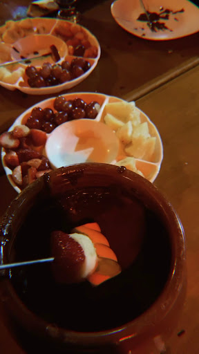Read moreBom custo benefício, fomos muito bem recebidos com nosso PET, equipe atenciosa e simpática. Ambiente charmoso com cadeiras cobertas com capa de lã de ovelha, e aquecedor de ambiente a gas. Fica fora do circuito turístico, porém de fácil acesso e com estacionamento na rua. fomos para experimentar a sequência de fondue, bem servido para um casal. Boa quantidade de carnes, servido alcatra, peito de frango, e lombo de porco, com pão italiano e batatas cozidas no ponto para grelhar na chapa, junto com fondue de queijo. Em seguida fondue de chocolate (bem saboroso) com frutas, morango, abacaxi, uva, marshmallow. Fica a crítica construtiva para melhorar o fondue de queijo, quando comparado a outras sequências que já experimentamos (Gramado, Campos do Jordão, etc). Mas nada que desmereça a experiência, pois foi compensada pelo fondue de chocolate de...