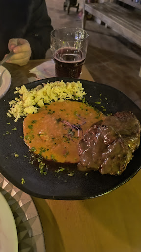 📌 Ambiente: O lugar tem uma vibe bem romântica, com luz baixa e música ao vivo. As cadeiras são confortáveis, sendo que o toque diferencial foi a pele de carneiro que deixou o assento ainda mais macio e quentinho. Achamos que a mesa para casal é muito pequena e, para piorar, a nossa estava bamba, o que atrapalhou bastante a experiência. Apesar das vibe romântica e chique que o local quer transmitir, o piso é rústico, de ladrinho de quintais antigos. Sobre a música, os músicos são bons, geralmente cantam MPB, porém, nos dias em que o bar de rock ao lado está aberto, imagino que a experiência fica péssima, pois o som da banda de rock sempre é mais alto.