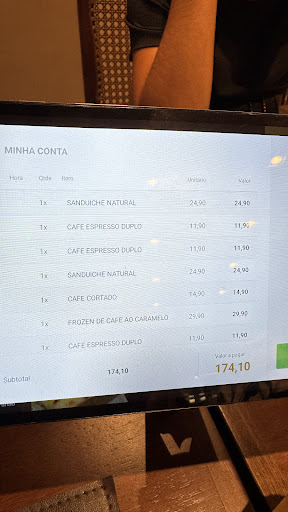Read moreUm pouco decepcionada, pedido chegou errado, queriam servir a parte a correção ( chantilly do capuccino) demorou muito e para completar e chegou frio, se quisesse café gelado, teria pedido um gelado... A moça que nos serviu( acabei esquecendo o nome, uma pena) foi muito atenciosa, pediu desculpa, pois ela só servia. Precisam se organizar mais, experiência decepcionante, afinal um capuccino que não foi tão barato assim, aliás mesmo que fosse barato não justificaria a qualidade e em servir quente. 60,00 de...